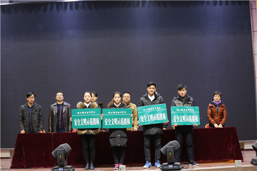 12月14日晚,学校在西区大礼堂举行安全文明创建活动颁奖典礼暨第一届创意寝室文化大赛文艺晚会。学校副校长杨立明、学工处全体工作人员及保卫处相关工作人员出席了此次颁奖典礼,对54个安全文明班级、48个安全文明宿舍、270名文明学生及4个安全文明楼栋进行了表彰,向受表彰的文明单位和先进个人颁发了荣誉证书和奖牌,并和全校寝室长一同观看了第一届创意寝室文化大赛文艺演出。