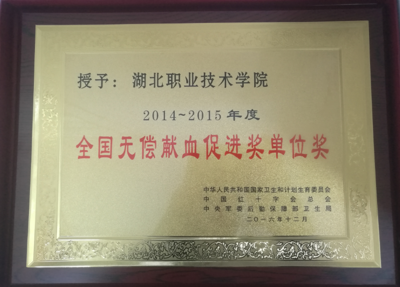 长期以来,学校注重培育孝文化与时代精神相融合的校园文化,重视培养学生的感恩、忠诚、责任、奉献品格,师生秉承“奉献、友爱、互助、进步”的志愿精神,踊跃参加无偿献血工作。每年近2000人次参与献血,献血量达到70万ml,连续4年被评为“孝感市无偿献血促进奖(单位奖)”。2016年12月被国家卫生计生委、中国红十字会总会、中央军委后勤保障部卫生局授予 “全国无偿献血促进奖(单位奖)”,是全国374个、湖北省9个获此殊荣的单位之一,是湖北省唯一获此荣誉的高职院校。下阶段,学校将开展系列文明创建活动,进一步加强校园文明建设,争取早日建成“全国文明校园”。