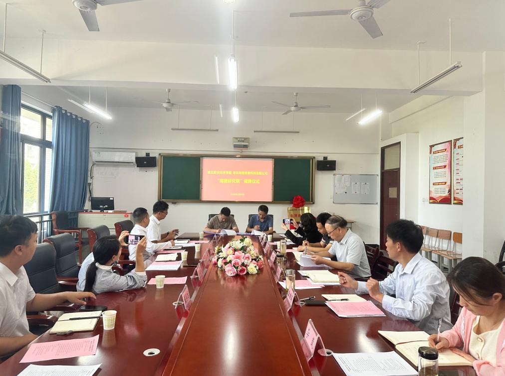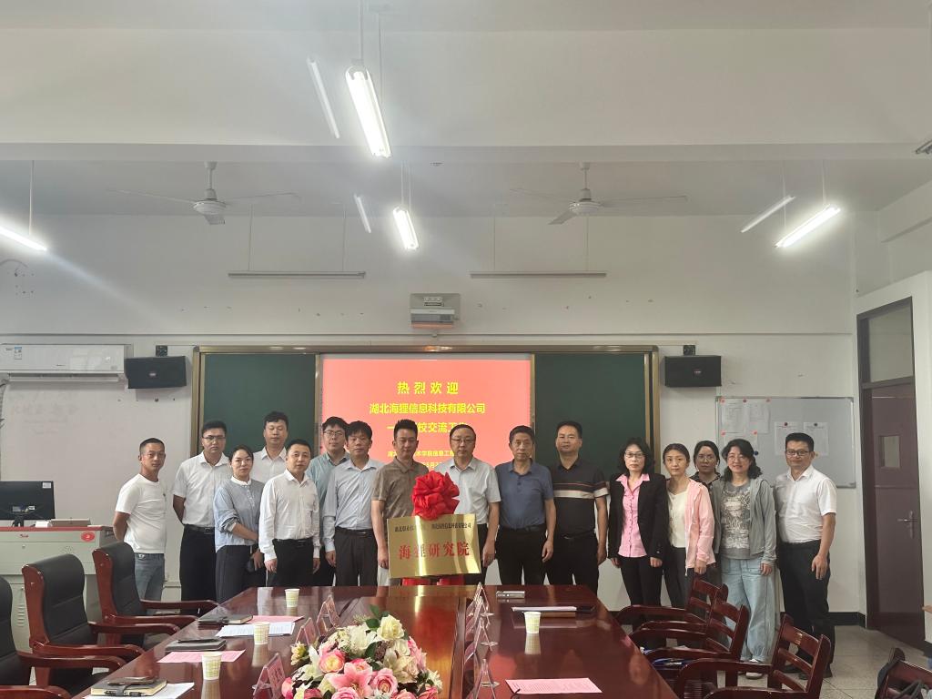 (本网讯 付金灵)5月23日下午,信息工程学院与湖北海狸信息科技有限公司在南校区知行楼8208会议室,共同举办“海狸研究院”揭牌仪式暨产教融合研讨会。学校副校长胡昌杰、信息工程学院领导班子、骨干教师、科研处相关人员,以及湖北海狸信息科技有限公司总经理舒重阳等校企代表齐聚一堂,会议由信息工程学院副院长龚雄涛主持。