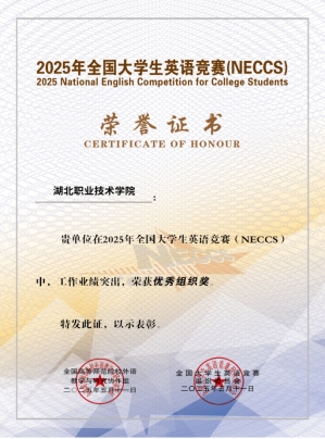 (本网讯 孙秀君 胡巍)近日,2025年全国大学生英语竞赛决赛在华中师范大学落下帷幕,湖北省79所高校400余名学生参加决赛。经过激烈角逐,beat365官网参加决赛的2名同学均获一等奖。在前期的初赛中,8名同学荣获二等奖,13名同学荣获三等奖。此外,beat365官网凭借出色组织工作,荣获“优秀组织奖”。