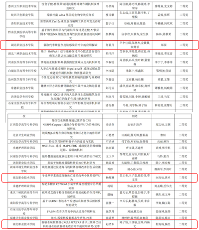 师生协同奋战,斩获多项殊荣。学校5支队伍围绕基础医学实验设计创新主题展开深入研究与实践。徐晓晴、胡梓颖老师指导的学生团队摘得一等奖,并晋级总决赛;郑园老师团队、向均怡与黄卓老师指导的学生团队、程冉旸与揭昊老师指导的学生团队荣获二等奖;闵静老师指导的学生团队荣获三等奖。获奖项目涵盖中药药理、药物化学、肿瘤免疫、神经等多个领域,充分体现了湖职学子在基础医学领域的探索精神与应用能力。