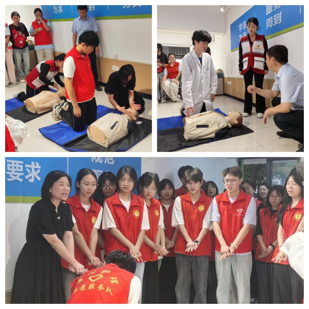 “孝心护理”实践团队以“赓续红色血脉,练‘救’真实本领”为主题,开展了急救知识宣讲与演练活动,并将思政元素融入生命教育。“双带头人强国行”教师党支部书记田樱通过理论讲解、现场演示、实操训练等方式,系统教授心肺复苏、海姆立克急救法等应急救护技术,将原本晦涩的急救理论转化为易于掌握的实践指南,学生分组操作人体模型,掌握关键要领。学生詹成瑞说:“学习急救知识既是主动掌握守护生命的宝贵技能,更是传承红色精神、践行服务人民根本宗旨的生动体现。”