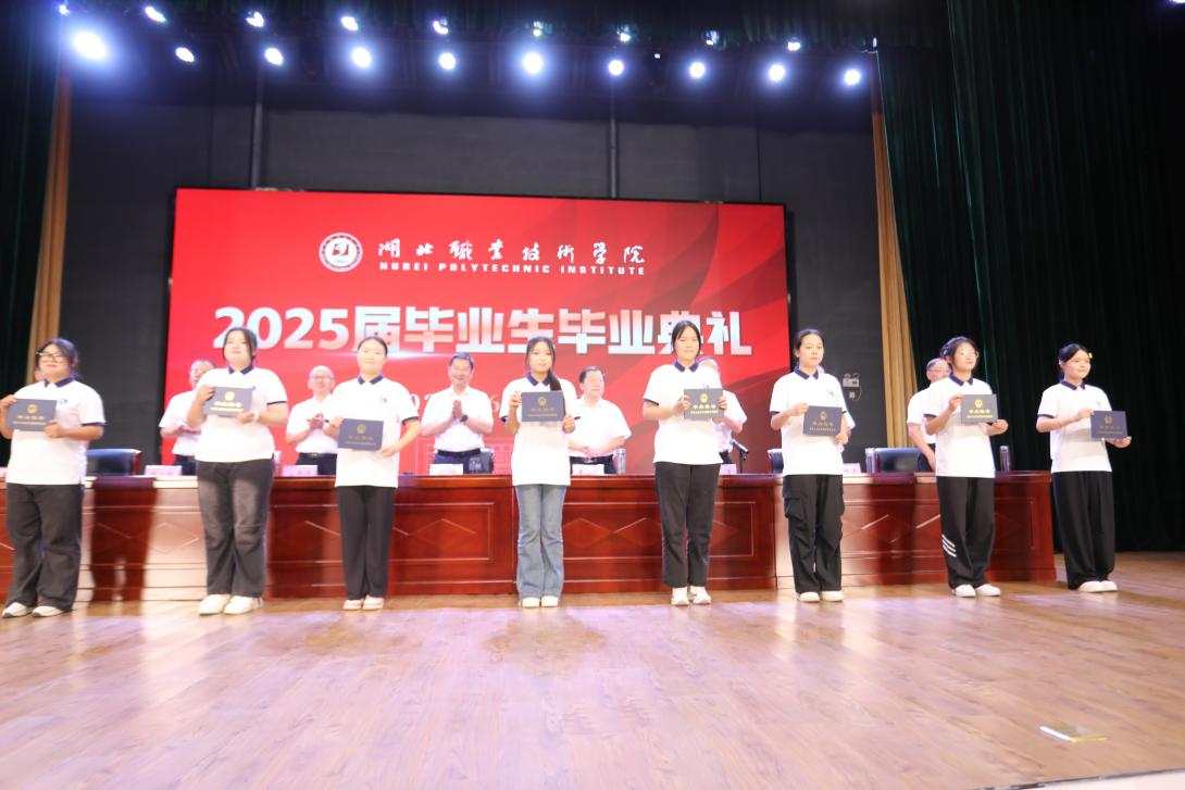党委副书记王益贤宣读2025届优秀毕业生表彰文件,全体校领导为毕业生颁发优秀毕业生荣誉证书和毕业证书。
