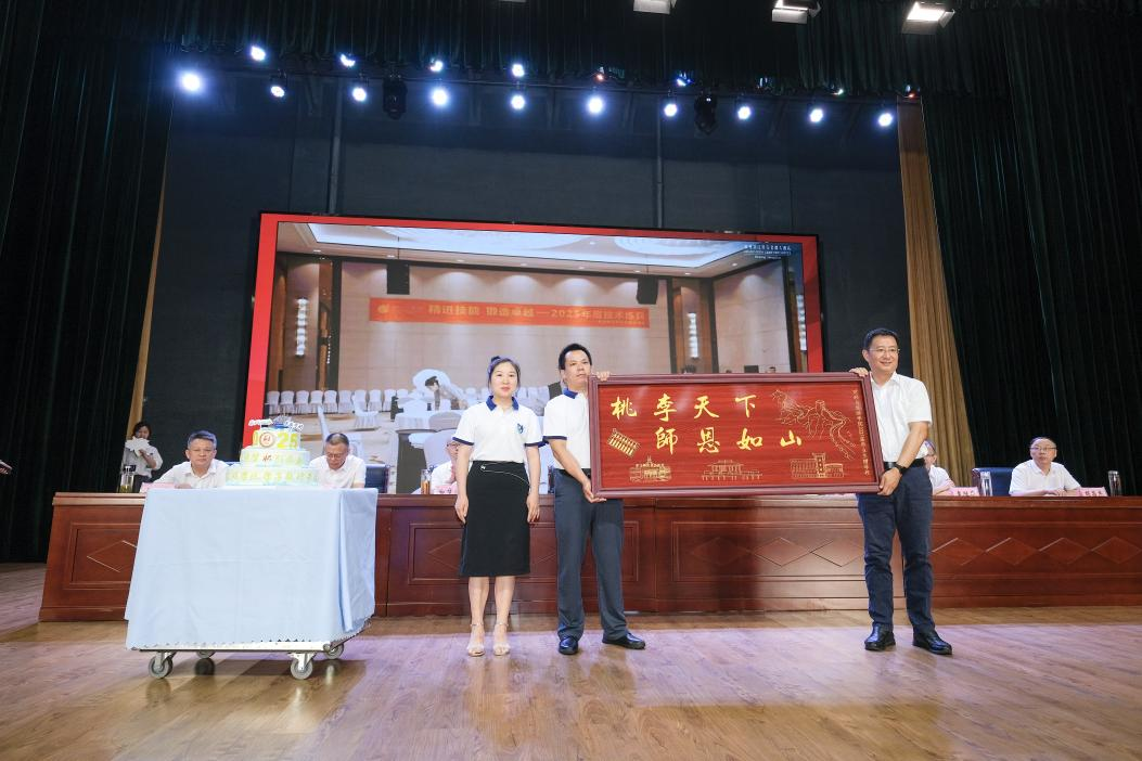毕业生代表向母校敬献承载师生情谊的匾额与蛋糕。