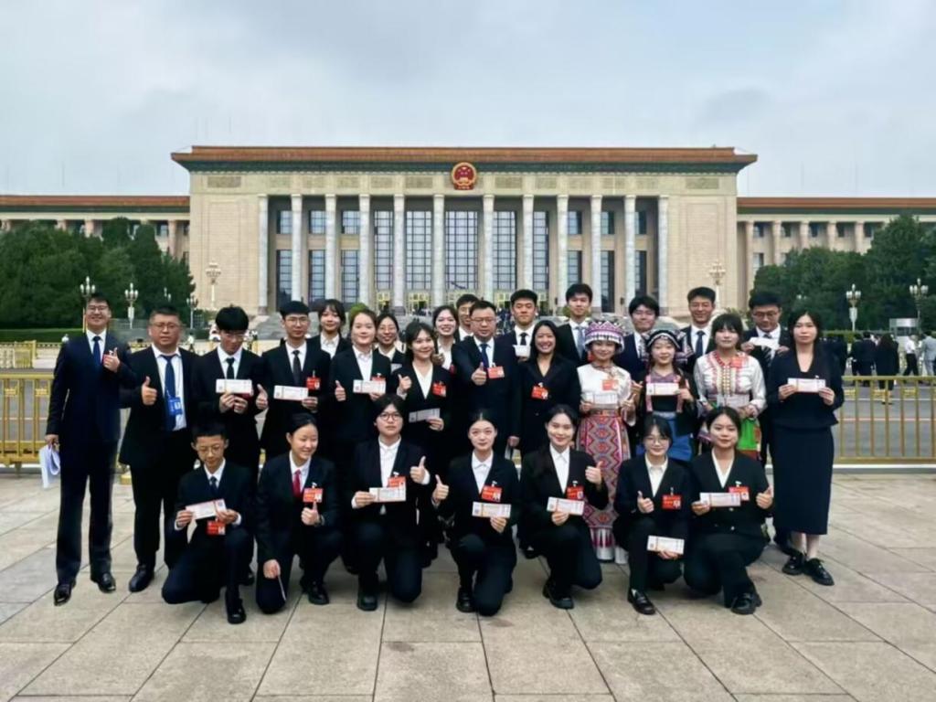 (全国学生联合会第二十八次代表大会湖北省代表团,第一排左3为冯赢)