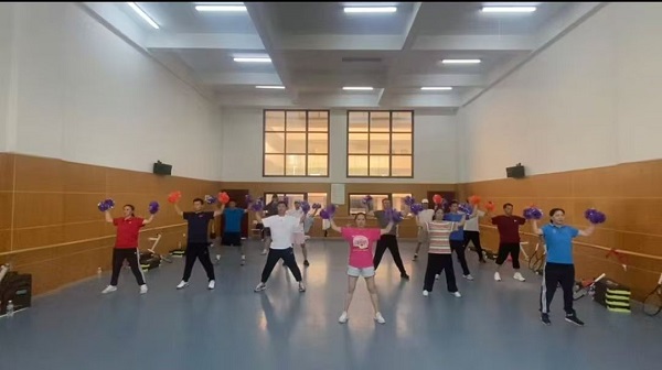 (体育部的老师们在排练节目)