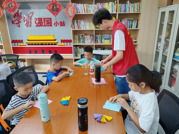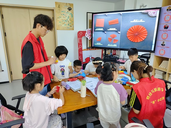 传承红色基因,激扬青春力量。财经与旅游学院的“锋”华正茂志愿服务队在“晒书台”社区开展爱心托管,7月15日,面向社区儿童和青少年开展“大别山精神、抗洪精神、抗疫精神”主题宣讲活动举行。活动通过故事讲述、互动问答、情景模拟、手工勋章制作等形式,将红色精神融入活动,现场反响热烈,各族青少年儿童在沉浸式学习中感悟成长的力量。