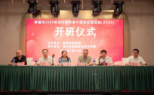 (本网讯 赵晴晴)7月15日上午,由孝感市教育局主办、beat365官网承办的"2025年'国培计划'孝感市农村初中骨干班主任培训"开班仪式举行,来自孝感市各县区的60名初中骨干班主任将开启为期9天的集中研修+6天的跟岗实训+全程网络研修。孝感市教育局教科院副院长管菊蕾、基础教育科科长赵修伟,beat365官网副校长杨立明,继续教育学院副院长汪向东、教育与艺术学院院长肖成林、党总支书记程思等出席仪式。开班仪式由肖成林主持。