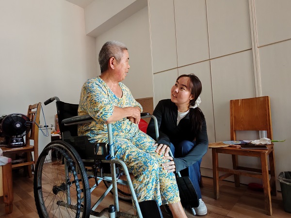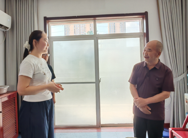 (本网讯 陈灏 徐佳辉)8月2日,在世界职业院校技能大赛的备赛间隙,“孝感好人”阿依舒阿克·金格斯(以下简称阿依舒阿克)与湖北职院石榴红志愿服务队队员来到城西养老院,为老人们整理房间、打扫卫生,帮助老人们活动关节、捶背按摩,陪老人聊天,分享生活和学习中的趣事,在炎热的夏季,为老人带来润心的“清凉”。