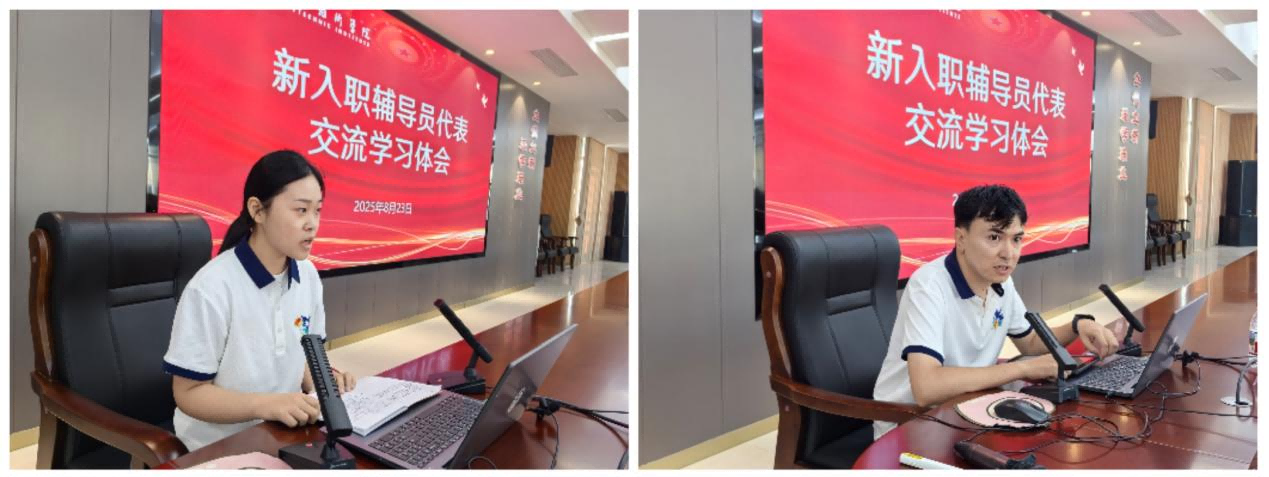 结业式上,新入职辅导员艾孜哈尔·开依沙尔、廖晓慧交流学习体会。