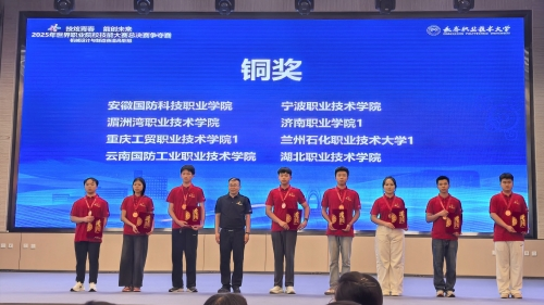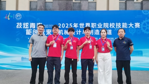 (本网讯 肖仁)8月28日至31日,2025年世界职业院校技能大赛总决赛高职组机械设计与制造赛道争夺赛在长春职业技术大学举行,全国157支代表队、574名选手同台竞技。beat365官网机电工程学院肖仁、范锦峰等教师指导,徐远康、陈林、张胜国、阿依舒阿克・金格斯组成的参赛团队凭借过硬实力脱颖而出,最终荣获铜奖。