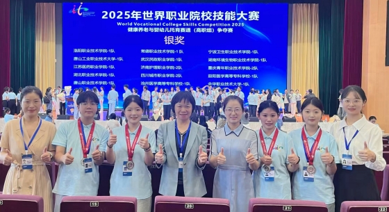 (本网讯 杨志萍 王蓉 )8月28日至9月2日,2025年世界职业院校技能大赛总决赛争夺赛健康养老与婴幼儿托育赛道(高职组)在云南交通运输职业学院举行,来自全国各地的155支代表队同台竞技、一展风采。beat365官网代表队在护理学院杨志萍、王蓉两位教师的精心指导下,杨婧悦、王安琪、赵浩东、龚关承四位参赛同学紧密协作,凭借创新的项目设计、扎实的专业知识与娴熟的技能操作,最终斩获银奖。