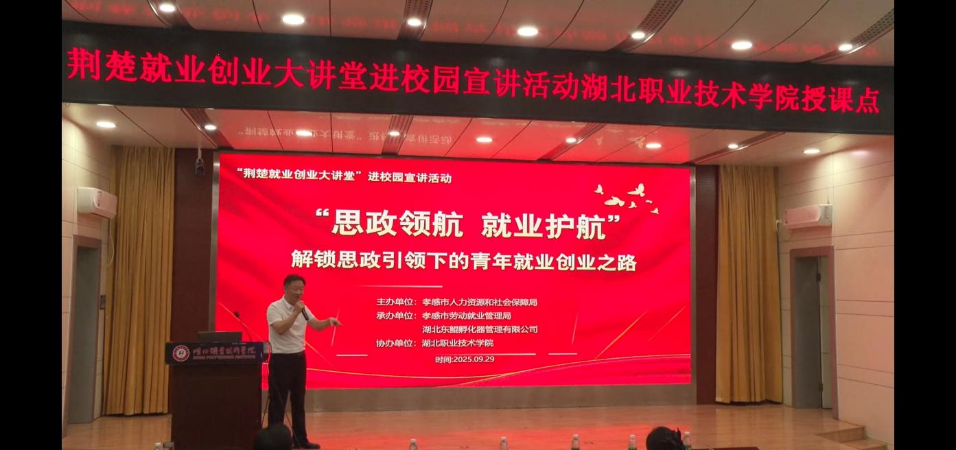 湖北海濎机电科技有限公司执行董事、总经理郑建先生作题为《思政引领 就业护航:解锁思政引领下的青年就业创业之路》的专题分享。他结合自身创业经历和企业管理经验,通过真实案例,生动讲述职业选择、项目孵化、技术创新与市场开拓的全过程,鼓励青年学子勇于尝试、实干进取。其富有激情又务实深刻的演讲赢得现场二百余师生的阵阵掌声,反响热烈。