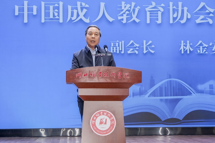 中国成人教育协会副会长林金安致辞表示,湖北开放大学(湖北省社区教育指导中心)要坚持理论先行,夯实发展根基;聚焦治理增效,激发系统活力;深化融合共享,服务区域战略。在学习型社会建设中走在前列、作出示范,为全国终身教育事业贡献更多“湖北智慧”、输出更优“湖北方案”。