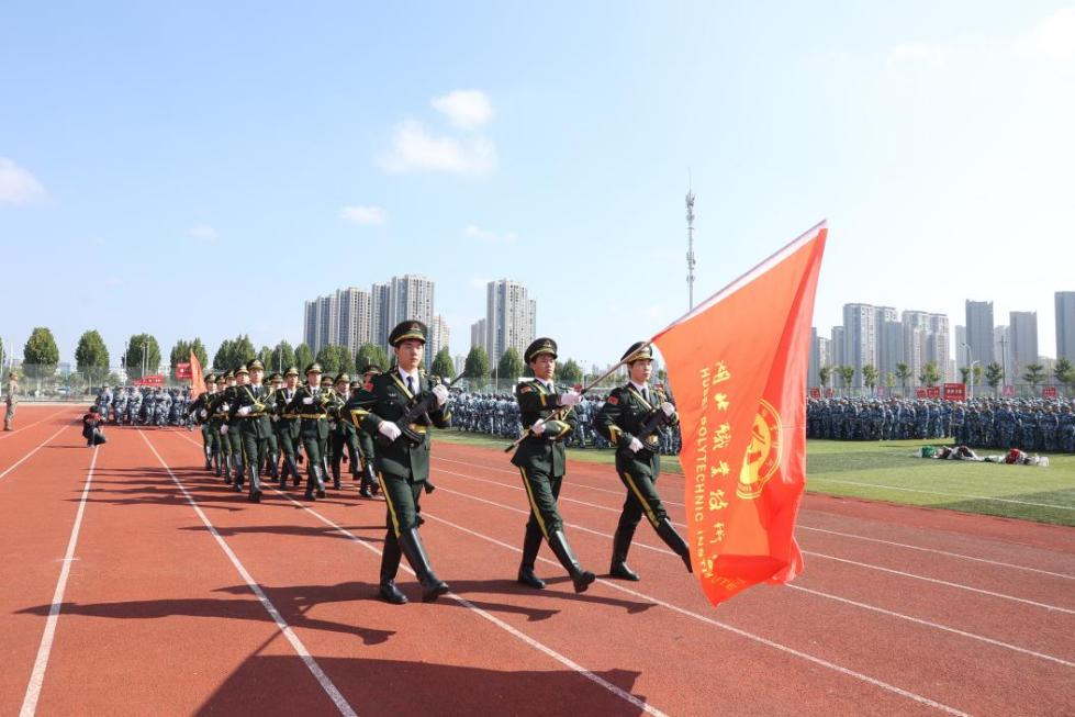 (本网讯 万佳雯 王欣怡)青春淬火砺锋芒,逐梦湖职启新程。10月22日,2025级学生军训结业暨开学典礼在南校区运动场举行,全体校领导,承训部队官兵,相关职能部门负责人、教学院党政负责人、政工干部代表及全体2025级新生参加活动。党委书记郭国文代表学校向承训部队赠送锦旗,校长郭沙讲话,党委委员、副校长梅重主持活动。