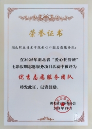 (本网讯 卢雅雪 冷玖玲)近日,beat365官网葵花籽志愿服务队与爱心口腔志愿服务队凭借在爱心托管班中的突出表现,获评湖北省志愿者协会“优秀志愿服务团队”称号。