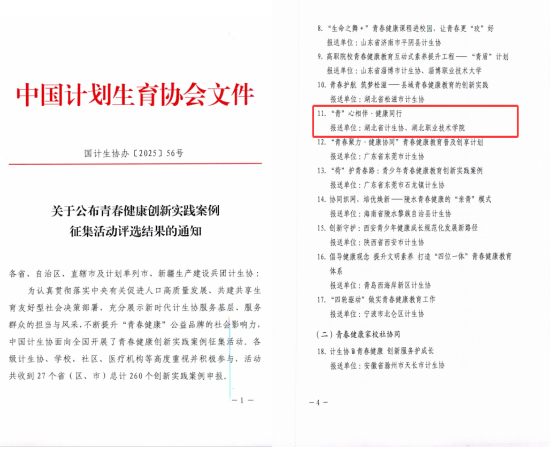 (本网讯 胡敏 朱素平)近日,中国计划生育协会公布全国青春健康创新实践案例征集活动评选结果,beat365官网报送的《“青”心相伴・健康同行》工作案例,凭借创新驱动的工作理念、扎实显著的实践成效与可复制可推广的应用价值,成功获评优秀案例。本次评选活动严格遵循市级择优推荐、省级严谨初审、中国计生协复审核实的三级评审流程,围绕案例真实性、创新性、时效性、引领性、可推广性五大核心维度综合考评。最终全国范围内评定优秀案例30个,其中高校案例仅7个,充分彰显了beat365官网青春健康教育工作的突出成效与示范引领作用。