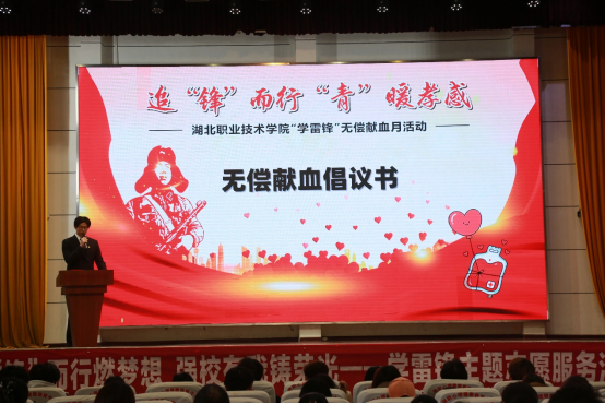 仪式在庄重而热烈的氛围中拉开帷幕。党委学生工作部部长魏俊桃致欢迎辞。她强调,无偿献血是雷锋精神在新时代的生动实践,是一堂将志愿精神从课堂走向社会的思政课。她向全校师生提出三点希望:一是提高思想站位,把责任“担”起来,将无偿献血工作摆在立德树人的高度来抓;二是深入科普宣传,把误区“破”开来,用科学数据和身边典型消除顾虑;三是踊跃参与行动,把大爱“传”下去,追“锋”而行、向暖而生。