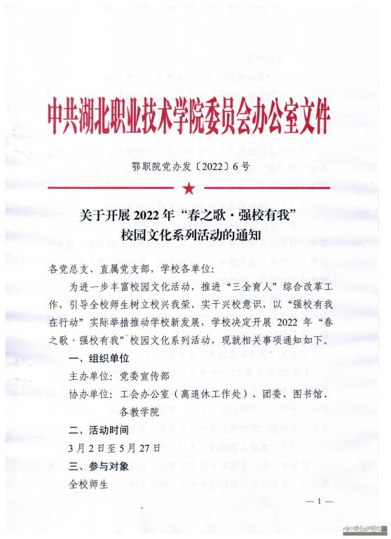 关于开展2022年“春之歌•强校有我”校园文化系列活动的通知