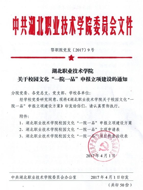 关于校园文化“一院一品”申报立项建设的通知
