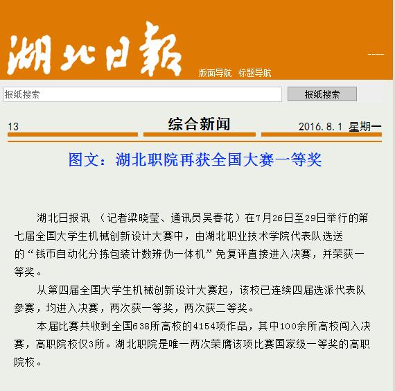 【湖北日报】湖北职院再获全国大赛一等奖