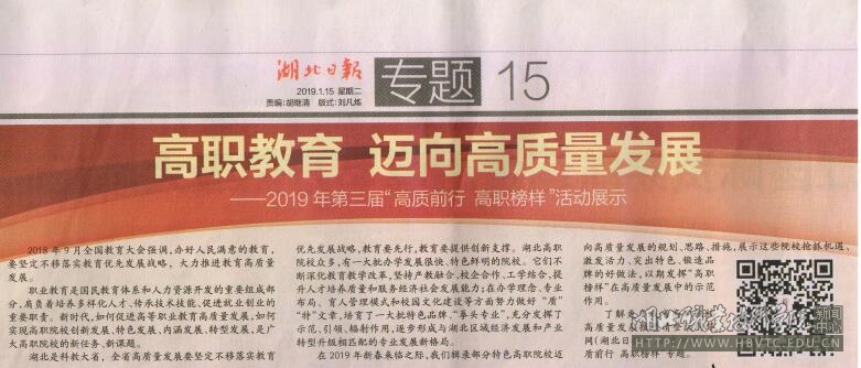 【湖北日报】高职教育 迈向高质量发展