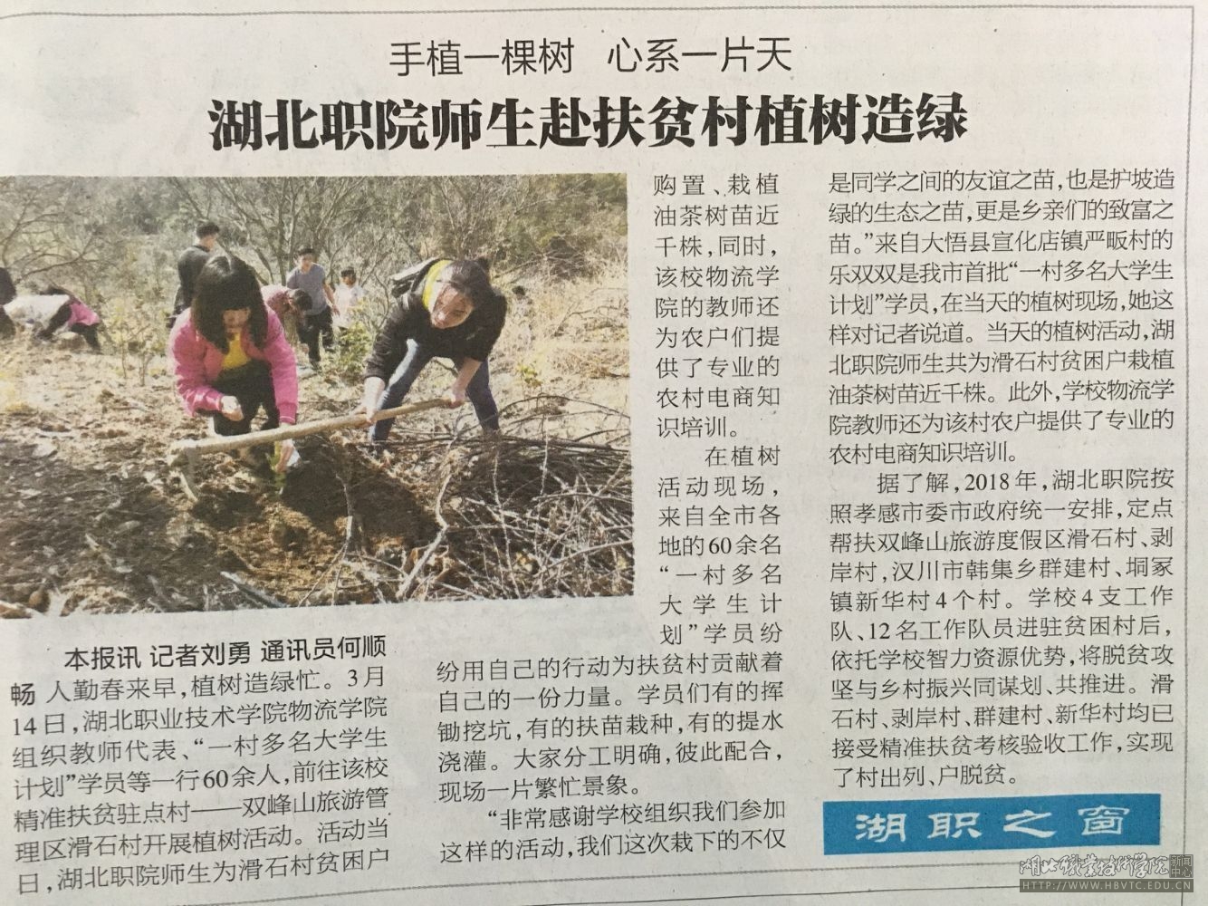 【孝感日报】湖北职院师生赴扶贫村植树造绿