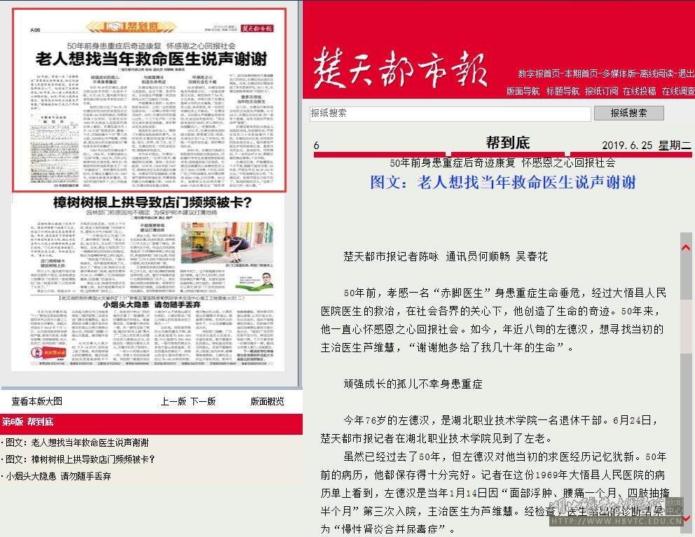 这几年,左德汉开始寻找当初的主治医生芦维慧。6月24日,左德汉告诉记者,他一直有个遗憾,没有当面对芦医生说声“谢谢”。