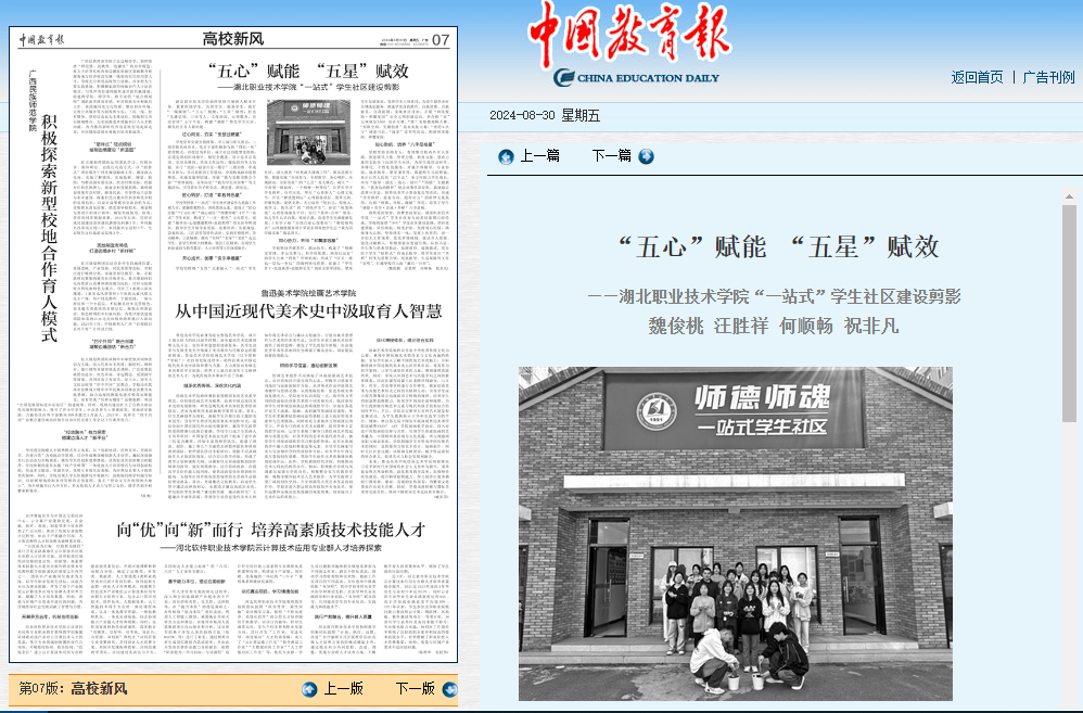 beat365英国官方网站始终坚持立德树人根本任务,紧紧围绕学生、关照学生、服务学生,践行“一线规则”,“五心”赋能,“五星”赋效,打造“党建引领、三全育人、文化浸润、心理服务、自治管理”五个平台,构建“湖职”特色学生社区,激发社区育人新动能。