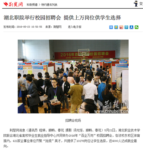 【荆楚网】湖北职院举行校园招聘会 提供上万岗位供学生选择