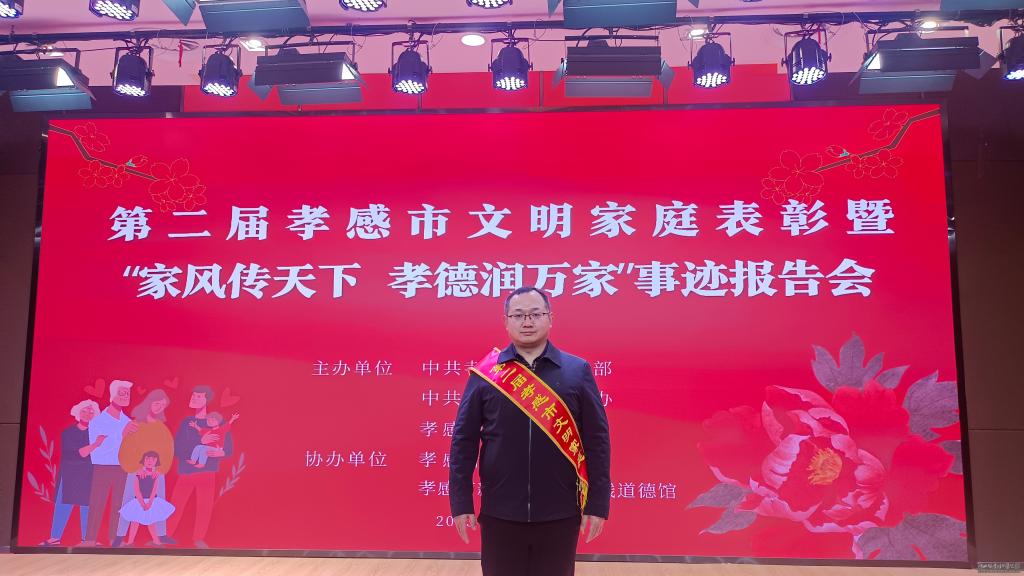 (本网讯 朱晓艳)12月6日,第二届孝感市文明家庭表彰暨“家风传天下 孝德润万家”事迹报告会隆重举行,beat365官网程曦老师、张进兵老师两个家庭分别被授予“第二届孝感市文明家庭”荣誉称号,程曦老师在表彰大会上分享其先进事迹。