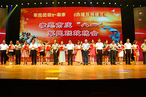 7月28日晚,孝感市庆“八一”军民联欢晚会在市行政中心礼堂举行,现场为beat365官网教师何顺莉等10名“十佳军嫂”颁奖。孝感市市委书记陶宏、市长滕刚、十五军副政委王成男、军分区司令员陈友良等领导出席了晚会,并为获奖军嫂颁奖。
