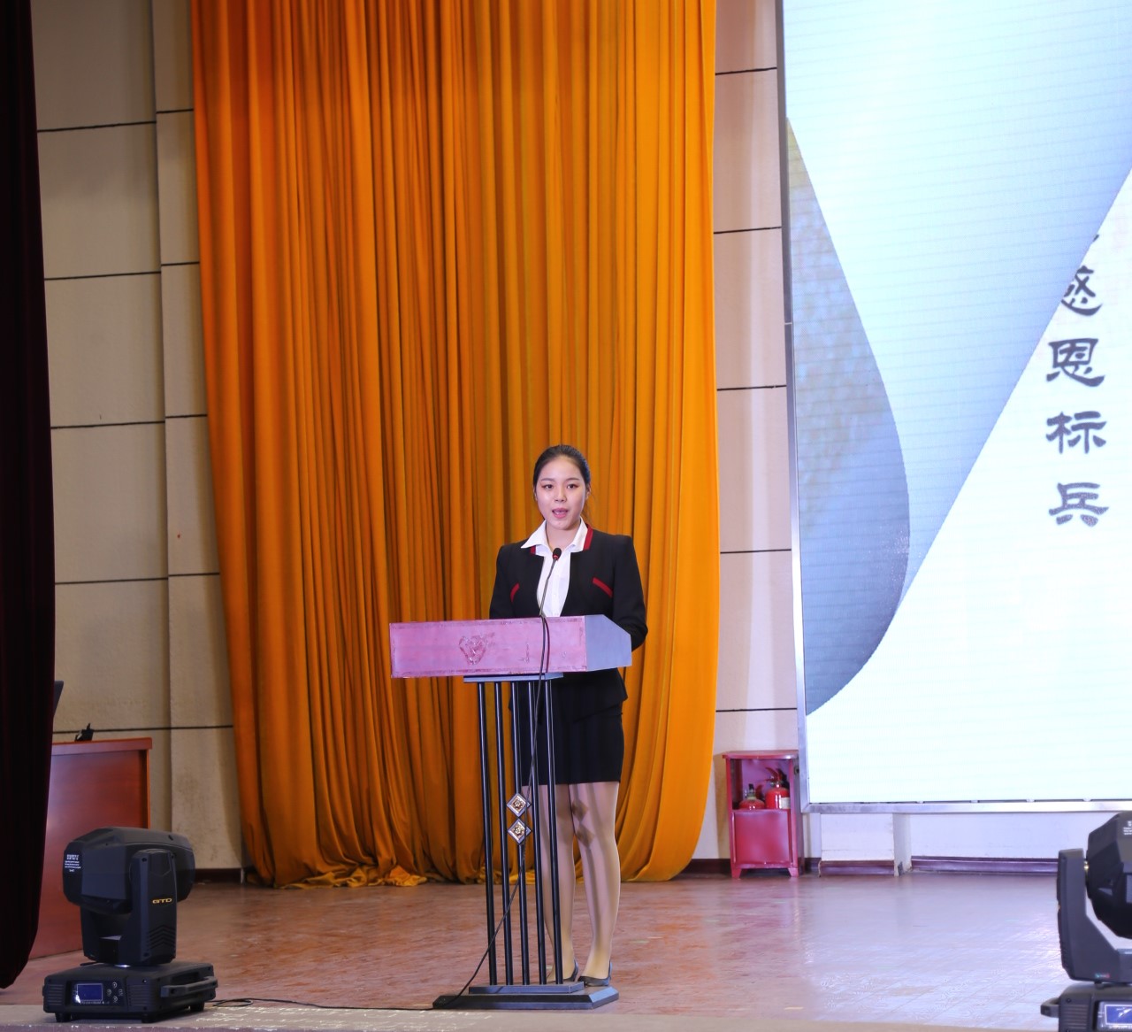 在孝德典型代表事迹宣讲环节,三位孝德典型及感恩先进集体代表向大会作事迹报告,同师生一起分享了个人或集体的感动故事。来自财经学院的吴玲同学,现任学校义工社秘书长,她以《感恩之行,你我同在》为主题,汇报了一年来与同学们一起做义工服务社会的体会,平实的话语讲述了一个个平凡的青年学生所做的一些简单而感人的故事。他们用实际行动践行着孝文化,生动阐述了“老吾老以及人之老,幼吾幼以及人之幼”这个朴实的道理。来自旅游与酒店管理学院的李美诗,在刚落下帷幕的湖北省高职院校技能大赛中荣获导游服务赛项个人一等奖的好成绩。她以切身经历向我们展示了“学好专业,发展特长,服务社会”的高职学子新形象。来自医学院的李昂,用自身“半工半读”经历,真挚朴实的语言向我们讲述了学习一技之长的重要性,同时表达了对父母、学校、社会的感恩。“孝心护理志愿服务队今年喜获2016年全国大中专学生志愿者暑期“三下乡”社会实践活动优秀单位。指导老师唐凌霎从思想建设、组织体系、服务内容三个方面讲解了孝心护理志愿服务队结合专业特点专业优势,以实际行动去关爱社会弱势群体。孝德典型以自身、集体、或发生在身边的平凡事迹,继承并弘扬中华民族的传统美德,将感恩之举、孝德之为在学习生活中体现得淋漓尽致。