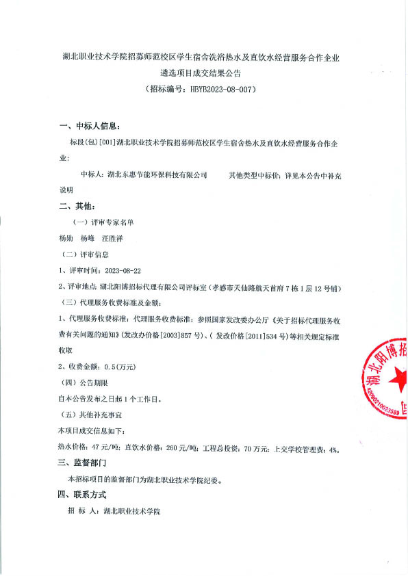 beat365英国官方网站招募师范校区学生宿舍洗浴热水及直饮水经营服务合作企业遴选项目成交结果公告