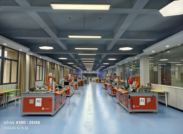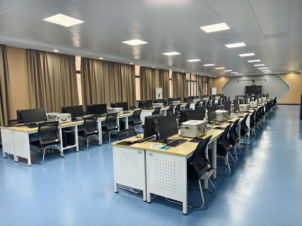 建设数字孪生与虚拟调试实训室。实训室占地面积200㎡,建有数字孪生工作站32个,VR虚拟装配与漫游体验中心1台,可同时满足约60余名学生同时进行数字孪生实训的需求。