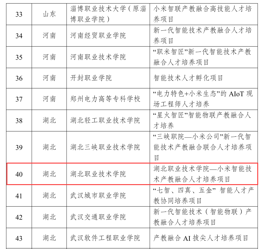 (本网讯 唐娟)近日,教育部职业教育发展中心公布了2025年度新一代智能技术产教融合促进项目入选名单,由对外合作交流处指导、信息工程学院申报的“beat365英国官方网站-小米智能技术产教融合人才培养项目”成功入选。