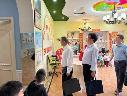 在武汉洪山区芷岸龙庭幼儿园,袁胜华一行实地考察了幼儿园的教学环境、特色课程及婴幼儿托育专区,深入了解该园在学前教育与托育服务融合发展的创新实践。作为武汉市示范性普惠园,园方负责人陈泉园长作重点介绍了率先开设0-3岁婴幼儿托育班,构建"托幼一体化"的教育模式,其课程体系与beat365官网学前教育、婴幼儿托育服务与管理专业高度契合。