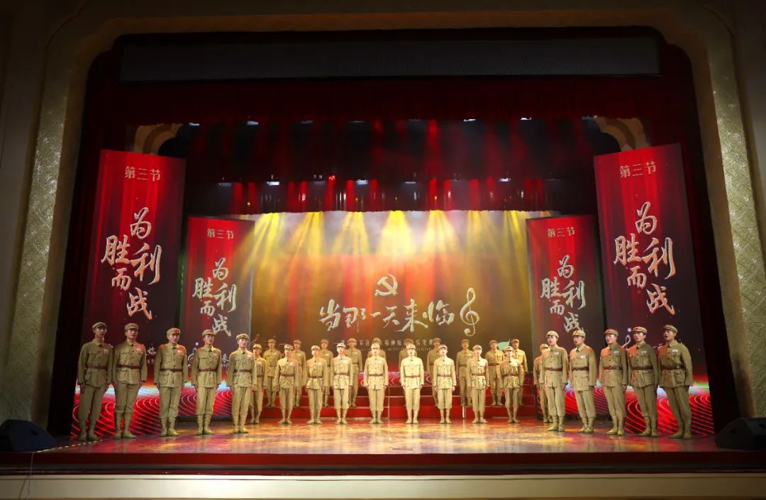 为纪念中国人民抗日战争暨世界反法西斯战争胜利80周年、抗美援朝出国作战75周年,大力弘扬“三大精神”(2024年11月,习近平总书记考察湖北时强调,大力弘扬大别山精神、抗洪精神、抗疫精神),“当那一天来临”红色音乐党课震撼举行。这堂震撼心灵的音乐党课,共遴选7首曲目,创作4部情景短剧、1支情景舞蹈、1部情景短片,均取材于党史军史中发生的真实历史事件。