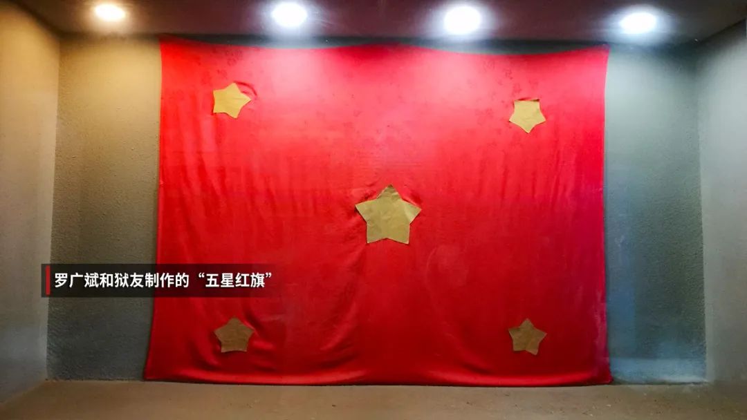 罗广斌拿出一张红色绣花被面,其他人则把黄色的纸剪成五角星的形状,他们没有见过真正的五星红旗,只知道有五颗星。通过讨论,大家把最大的一颗星,用米粒粘在了红旗的中央,代表着中国共产党。四颗小星贴在四个角落,象征新中国四万万同胞,围绕在党的周围。就这样,他们凭借想象缝制了一面“五星红旗”。然而遗憾的是,这些隐蔽战线上的战士没能走出监狱,最终也没能看到真正的五星红旗。