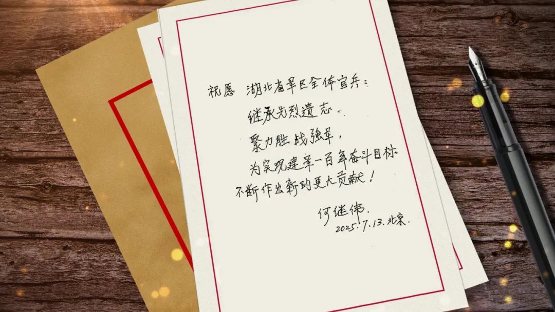 何功伟的儿子何继伟,如今已年过八旬,行动不便,老人得知音乐党课的消息后,专门在北京给湖北省军区发来寄语。祝愿湖北省军区全体官兵:继承先烈遗志、聚力胜战强军,为实现建军一百年奋斗目标不断作出新的更大贡献!
