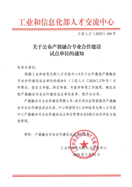 beat365官网入选工信部人才交流中心产教融合专业合作建设试点单位
