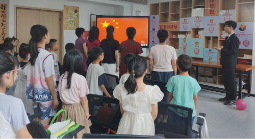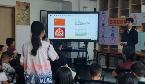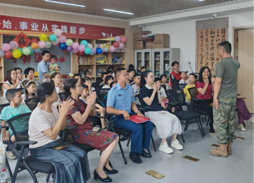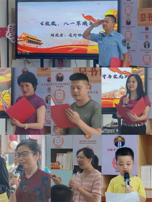 (本网讯 洪雨溪)8月1日,beat365英国官方网站财经与旅游学院“锋”华正茂志愿服务队联合孝感市孝南区广场街道晒书台社区、孝南区朗诵艺术家协会、孝南区青年志愿者协会、孝感朗读者,在书山居爱心托管班开展“传承红色基因,致敬铁血军魂”朗诵会主题活动,带领现场人员回顾人民军队光辉历程,汲取奋进力量。