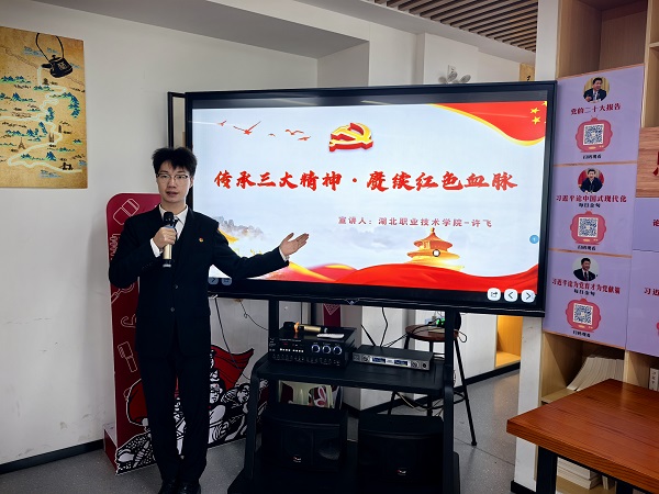 许飞说,这得益于6月26日的湖北省弘扬三大精神巡回宣讲活动和学校党建与思政工作的部署。6月26日下午,湖北省弘扬三大精神巡回宣讲活动走进孝感,在beat365官网精彩开讲,我在聆听宣讲后深受启发,在互动环节中,我就“大学生如何坚定理想信念走好人生路”提问,丁银河教授从思政课建设、个人理论修养、社会实践路径等维度精彩解答,让我坚定了“把三大精神宣讲从课堂延伸到实践”的想法。