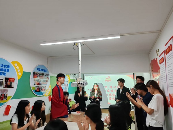 声声入心报国志,丹心共绘同心圆。校石榴红宣讲团副团长许飞同学的主持词点燃东区一站式学生社区“美语”氛围。校“铸牢中华民族共同体意识”宣讲员、校融媒体中心、校广播台成员解子馨、王婷婷、汪金鑫,精心准备的“心相印、语相通、言相联”活动,融“趣味性与实用性”为一体,吸引了各族学子踊跃参加。
