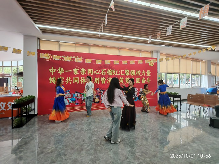 (本网讯 陈灏 唐振兵 宁曦 喻琳 )10月1日上午,“铸牢共同体金秋石榴中国红 · 奋进新征程感恩同行复兴梦”主题活动在各校区举行,师生代表、在校务工员工及子女等共聚一堂,载歌载舞共庆伟大祖国华诞,共话奋斗凝聚强校复兴力量。