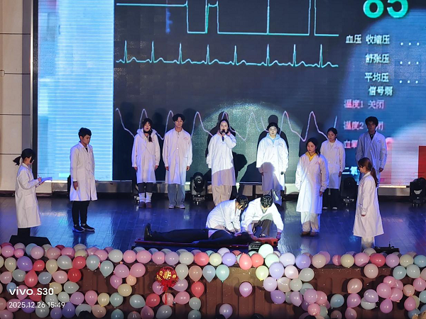 2025级临床医学专业一班的小品《消失的星期天》诙谐幽默,蓝天使舞蹈协会的劲舞《one spark》活力四射,2025级临床医学专业四班带来的《美丽中国》激发师生对祖国的无限热爱。一个个精彩节目轮番登场,赢得台下观众阵阵掌声。
