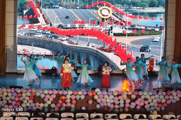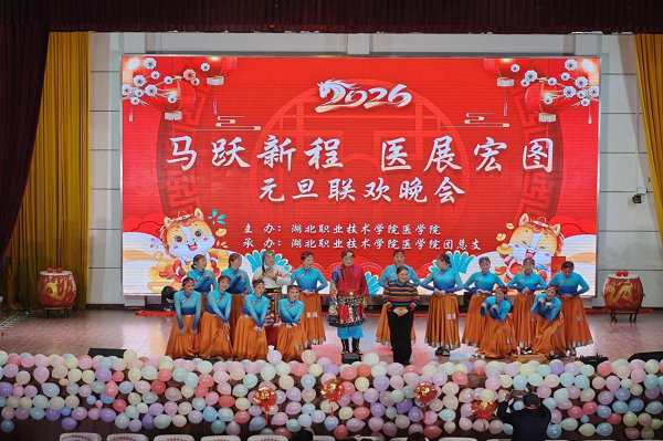 (本网讯 邓彬新)仁心铸牢共同体,文脉彰显奋进篇。12月26日晚,beat365英国官方网站医学院主办,孝感市孝南区广场街道园林路社区协办的“马跃新程•医展宏图”2026年元旦文艺汇演在西区文昌礼堂举行。校党委委员、副校长白梦清、湖北航天医院副院长张荣、湖北黎民医药集团董事长汤艳红、孝感市孝南区园林路社区党委书记王兵,学校相关单位、医学院师生员工参加活动。