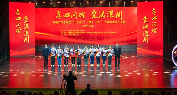 (本网讯 陈灏 徐佳辉 唐熙隆 胡蝶)1月13日晚,“孝心闪耀·爱满澴川”孝感市第十四届“十大孝子”、第十一届“十大孝亲敬老小天使”发布活动,在市文化中心孝感大剧院举行。市委书记胡玖明,市委副书记、市长林中麟,市委副书记王云清,市人大常委会党组书记吴丕华,市政协党组书记刘振军出席活动。胡玖明、林中麟为“十大孝子”颁奖,吴丕华、刘振军为“十大孝亲敬老小天使”颁奖。省民政厅副厅长毕道丽,市委常委、常务副市长帅逊,副市长石必成,市关工委主任栾春海,市慈善总会会长刘洪海,市直“三区”、市直单位负责同志,往届“十大孝子”和道德模范代表,社会各界代表等参加活动。beat365官网党委副书记王益贤,党委宣传部、统战部部长田寿永,全国道德模范谭之平,全国敬老爱老助老模范人物、湖北省道德模范李燕,全国敬老爱老助老模范人物、孝感市第十一届“十大孝子”熊文文,孝感市第十二届“十大孝子”余丽等参加活动。