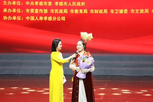 湖北职院机电工程学院2023级学生、校荆楚石榴红志愿服务队副主席、荆楚石榴红宣讲团成员、石榴红•孝廉谷文化基地讲解员阿依舒阿克·金格斯荣膺孝感市第十四届“十大孝子”。湖北职院荆楚石榴红艺术团表演的节目《美丽中国》压轴登场,“湖职元素”燃爆全场,学校服务中华孝文化名城建设的支撑力、贡献度进一步彰显。