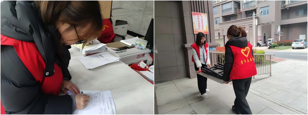 便民服务岗上:志愿者们主动协助社区开展便民服务,协助社区志愿者为老人测量血压、维持现场秩序,同时配合社区工作人员完成免费磨刀、理发等暖心服务,让居民切实感受到志愿服务的温度。